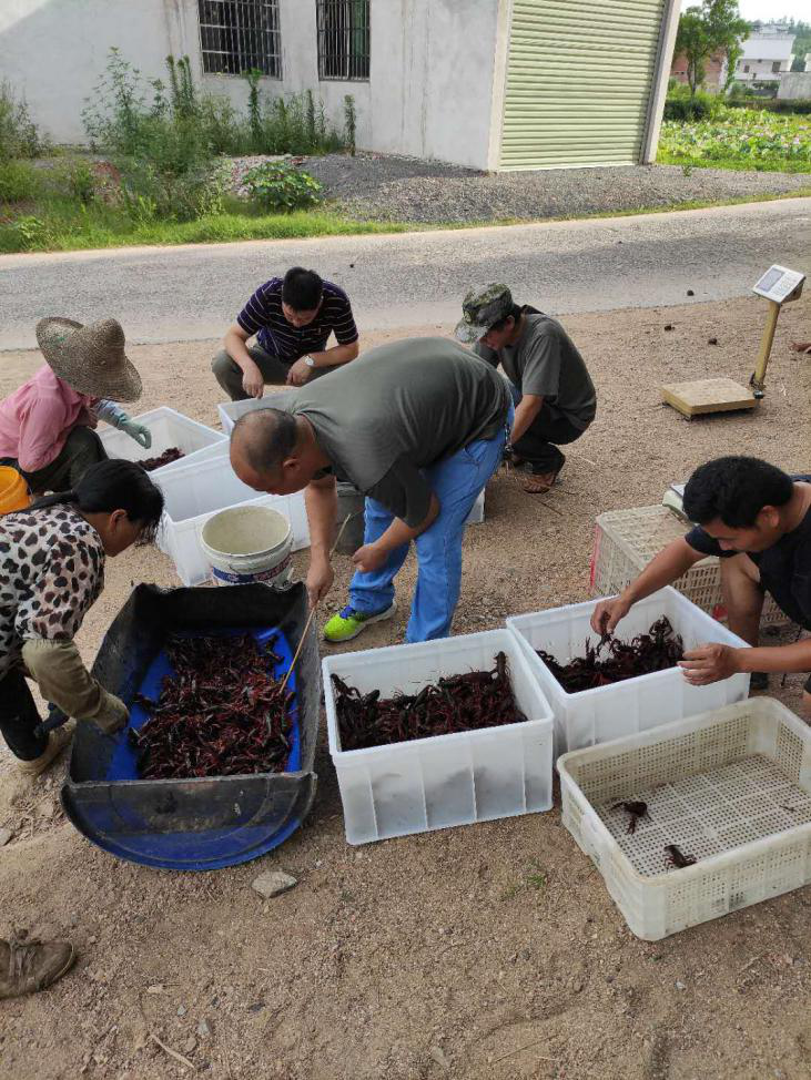 返回吉埠村后,尹书记立即组织合作社全体股东、扶贫工作队队员,连夜研究小龙虾销售方案,第二天按照既定销售方案,正式进行首日销售。
