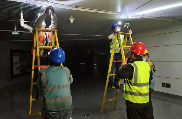 在中节能江苏公司下属子公司晶和科技多个项目现场,一片繁忙景象。中医药科创城城市道路新亚博全站浏览器程项目,项目全体人员坚守项目现场:管理人员全面做好现场指挥;施工人员在各自岗位上紧密施工;各种作业车有序进行紧张作业。在连云港京港地铁十四号线LED节能改造项目,该项目包含3个区间段,共29个站,6个风亭,各站点施工条件不一、环境复杂,同时还要做好现场成品保护,在不影响地铁正常运行情况下科学有效施工。经过项目团队前期紧张施工,目前项目已完工98.9%,进入收尾关键阶段。为确保5月底实现项目整体完工,五一期间项目团队全体人员坚守岗位、辛勤劳动。图为连云港京港地铁十四号线LED节能改造项目现场。